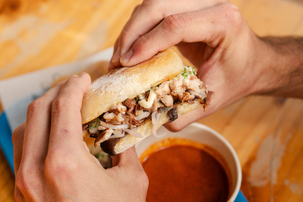 Torta Ahogada de Carnitas ahumadas