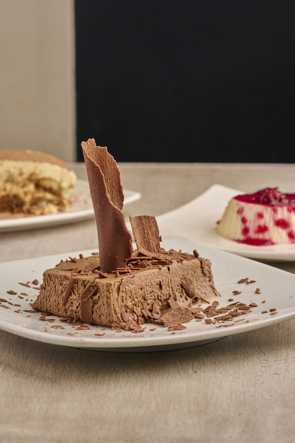 Combinación de café de Colombia y Brasil, con notas de cereales, galleta dulce y aroma a avellana, acompañado de mousse de chocolate.