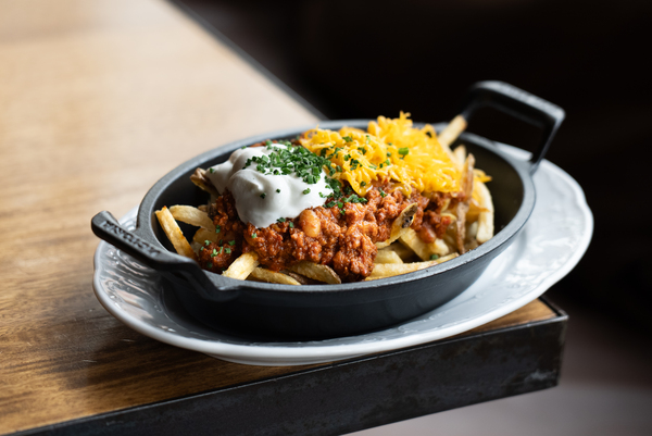 Papas a la francesa, chile con carne, sour cream y queso cheddar.