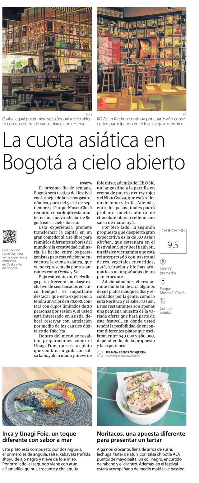 Conóce el menú de los restaurantes que harán parte de la 5ta edición de BogotaEats A Cielo Abierto.