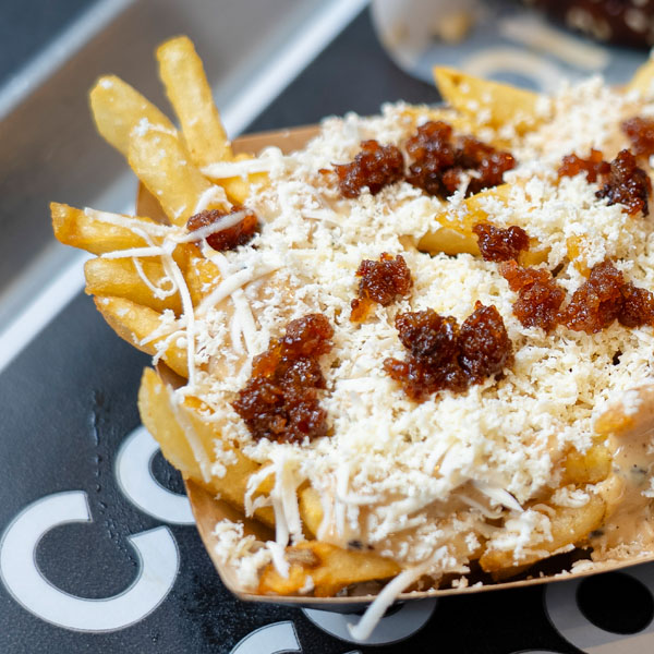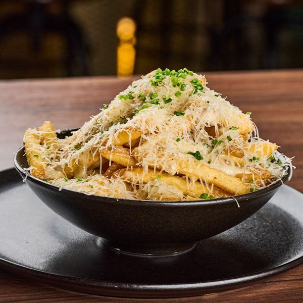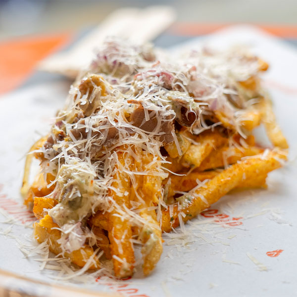 Wagyu philly cheese french fries, alioli rostizado y queso Grana Padano.