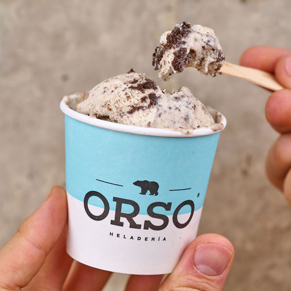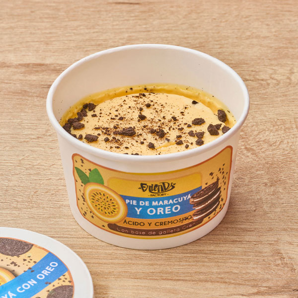 Crust de oreo con helado de maracuyá y crocante de chocolate, cuchareable.