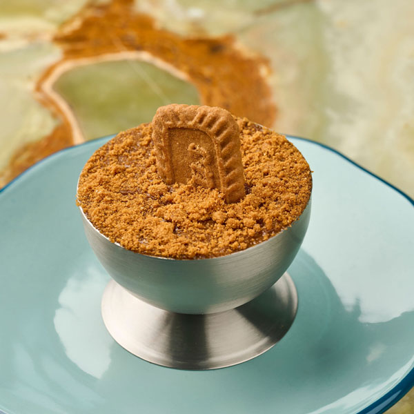 Galleta Lotus, remojada en amaretto y café espresso, crema de mascarpone y crema Lotus.