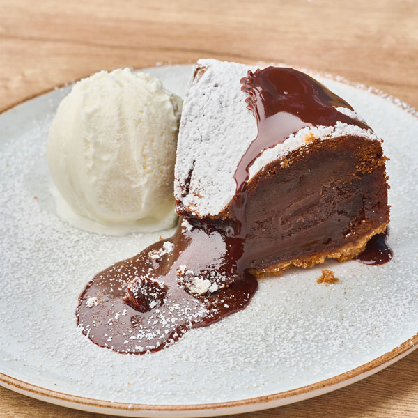 Torta de cacao negro, ganache de Nutella y chocolate semiamargo.